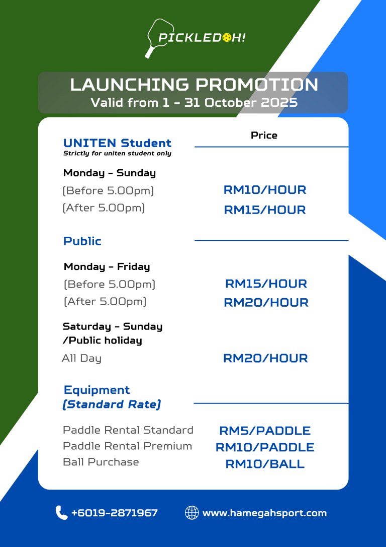 - In October 2025, all payments for rental paddles and ball purchases must be made at the counter office @UNITEN.