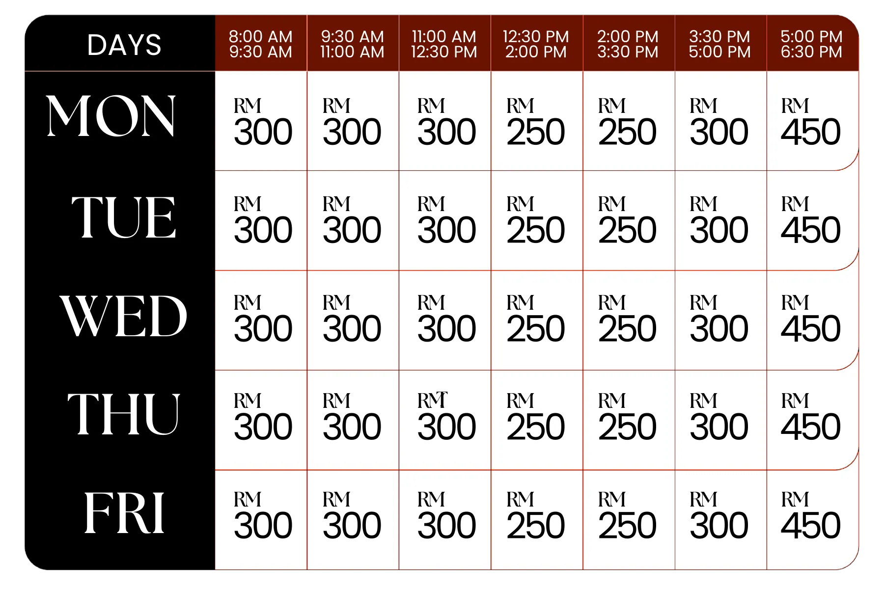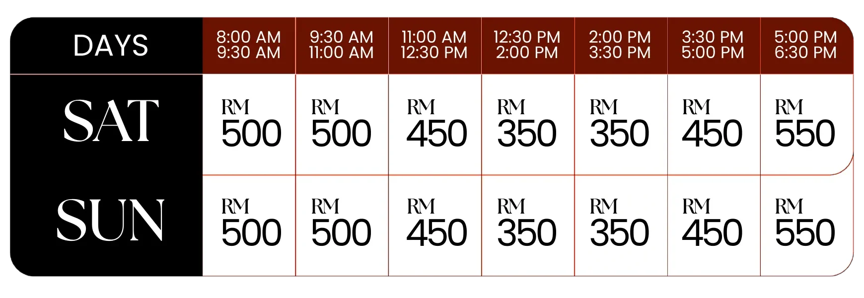 - Changes of date/time must be notified at least 3 days before the scheduled booking date. The deposit will be carried over to the new slot booking date/time.